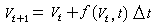其中Vt可以是单变量,也可以是向量。如果Vt是向量,则上述方程就变成方程组。一般说初始值V0总是已知的,有了V0按照上述差分方程就可以算出V1,然后再把V1代入方程,即可算得V2,这样反复迭代,就可以算出所有的Vt。差分方程的优点是容易在计算机上实现,所以很多微分方程为在计算机上求数值解,也必须先化成差分方程。