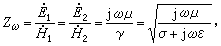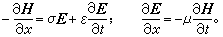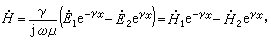 此处选择直角坐标系,使E)沿y轴方向、H沿z轴方向。在正弦稳态下,用交流电中相量表示法(见交流电),可将式(1)化为只含一自变量的常微分方程组,即