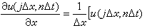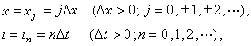 所示(网格线之间的距离,也可以是不相等的)。网格线的交点叫作格点,在格点(jΔx,nΔt)上,由数值微分公式
