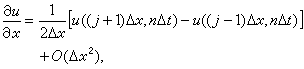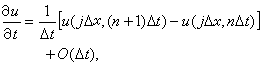 略去其中O(Δx2+Δt)项,即得一个差分方程。原问题的解u(x,t)自然不能满足这个差分方程。用