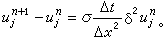 +1,叫做显式格式。显式格式与(2)是相容的,它的截断误差为 O(Δx2+Δt);如