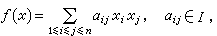 此时将ƒ的系数矩阵(ƒij)记为 F,将x视为列矩阵,便有 ƒ=xTFx,其中xT表x的转置阵。F的秩nƒ和行列式dƒ,分别称为型ƒ的秩和行列式。F为满秩,则称ƒ为非奇异的;F为降秩,则称ƒ为奇异的。对给定的I上n元型ƒ和m元型g(m≤n),若存在