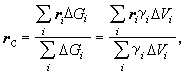 设想把物体分割成若干微元,用ΔV 和 ΔG 代表其中任意一微元的体积和所受的重力,ΔG 可以认为作用在ΔV 中的某一确定的点A上,并设γ代表其比重,则物体重心C的位置决定于公式