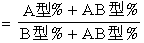 在人类学上,根据 A型、B型及AB 型三型的出现率的多少组成一个指数,叫作种族生化指数,种族生化指数