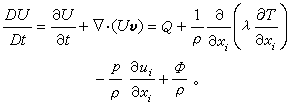 一般能量方程如果对质点加热(如用热传导、辐射、化学反应),单位质量流体加的热用Q表示,T表示热力学温度,λ 表示热导率,在单位时间内对单位质量的流体传入的热是