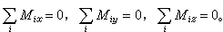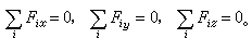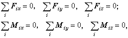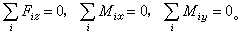 式中Fix,Fiy,Fiz为力系中的力Fi在直角坐标系中所对应的Ox,Oy,Oz轴上的投影;而Mix,Miy,Miz是力Fi所对应的Ox,Oy,Oz轴的力矩。