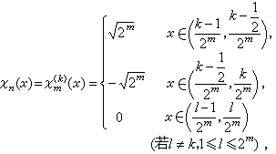 仅当 ƒ(x)呏0时才成立,则称 {φn(x)}是完备的。前面所说的三角函数系、哈尔系、沃尔什系都是完备的,拉德马赫尔系不是完备的。若{φn(x)}是完备的就范正交系,那么对于一切ƒ(x)∈L2[α,b]有展开式