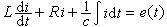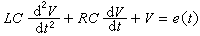 若电源电压为e(t),回路中电流为i(t),电容器上的电压为V(t),则可建立如下回路方程