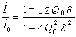即失谐时,电流随回路的Q0值和相对失谐δ的增大而下降。在谐振频率(即回路的固有频率)