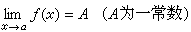 设ƒ(x)是在x=α附近有定义的一个函数(但ƒ(α)可以没有意义),则ƒ(x)当x→α时以A为极限是指:任给
