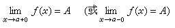 这时称 A为ƒ(x)当x→α时的右(或左)极限。显然极限(1)成立的充分必要条件是这两个左右极限都等于A。