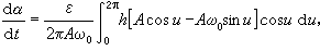 其通解为x=Acos(ω0t+α),A,α 为常数。当│ε│很小且不为零时,设A、α为t的函数,并令