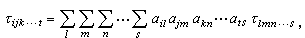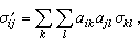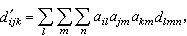 它们分别是二阶和三阶张量。因此说物性参量由若干分量所组成,具有张量的性质。如果某个物性参量具有3n个分量τijk…s构成一个整体τ,并有如下变换规律: