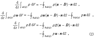 式中Ω(t)为空间中任一活动的区域,дΩ(t)是其边界,D是дΩ(t)的速度,n是дΩ(t的外法线方向单位向量。