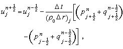 式中R与r分别表示介质的欧拉与拉格朗日坐标;V为比容,等于密度的倒数;l与ρ0分别是具有长度和密度量纲的给定的量。相应的差分方程组为