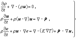 表示单位张量,(墷u)′为墷u的转置;K(ρ,e)为介质的热传导系数;λ(ρ,e)和 μ(ρ,e)为介质的粘性系数,它们满足关系