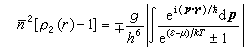 ,式中“+”号对应费密分布,“-”号对应玻色分布。由相关函数公式可知,对于费密气体嬞2[ρ2(r)-1]<0,即空间一点某粒子的存在,使得另一粒子出现在这点附近的几率减小;对于玻色气体嬞2[ρ2(r)-1]>0,即空间一点某粒子的存在,使得另一个粒子出现在这点附近的几率增加。前者表明粒子间存在着排斥相关性,后者表明粒子间存在着吸引相关性。当h→0时,就过渡到经典力学极限情况,此时由于相关函数公式右边被积函数中因子