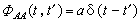 以A(t)代表布朗粒子在涨落力作用下得到的加速度,则定义它的时间相关函数为