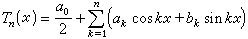 的多项式,式中系数αk(k=0,1,…,n),bk(k=1,2,…,n)为任意给定的实数,αn,bn不全为零。n称为此三角多项式的阶数。任何一个三角多项式都是周期2π的周期函数,因此对于三角多项式的研究往往只要在长为2π的半开区间中进行。任何两个三角多项式的和、差、积仍然是个三角多项式,而且,若Tn(r)与Tm(x)分别为n阶与m阶三角多项式,且m≥n,则Tn(x)±Tm(x)是个阶不超过m的三角多项式,Tn(x)·Tm(x)是阶为n+m的三角多项式。利用欧拉公式