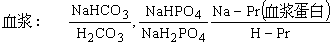 血液中含有一系列对酸碱度变化起缓冲作用的物质,既能抗酸又能抗碱,这些物质是由弱酸和该弱酸盐所组成的许多缓冲剂。例如,NaHCO3/啹CO3为一对缓冲剂。当将强酸HCl加入这一缓冲溶液时,HCO婣就同它发生反应而成为弱酸啹CO3,结果pH变化不大。当将强碱NaOH加入时,啹CO3就同它发生反应,而生成弱碱NaHCO3,因此pH值变化不大。可用反应式表示如下: