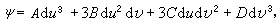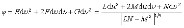 是三维仿射空间A3的一点的坐标,x=x(u,v)是一个曲面S的参数表示。又设普通曲面论的第二基本形式为Ldu2+2M dudv+Ndv2,那么仿射曲面论的二次基本形式是