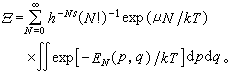 式中(p,q)代表(p1,p2,…,pf;q1,q2,…,qf),dpdq=dp1dp2…dqfdq1dq2…dqf,h是普朗克常数,f是系统的自由度,同粒子自由度s的关系是f=Ns,巨配分函数Ξ 为