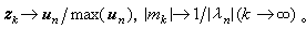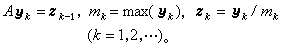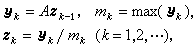 若│λ1│>│λ2│, 则当α1≠0,且k足够大时,Akz0除相差一个纯量因子外趋于λ1所对应的特征向量,这就是乘幂法的基本思想。实际计算中最简单情况的乘幂法的迭代格式是:取初始向量z0,计算