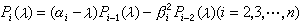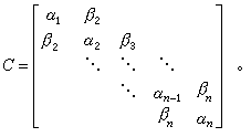 法计算C 的特征值。当βi≠0(i=2,3,…,n)时,由C-λI 的顺序主子式组成的多项式序列P0(λ)呏1,P1=α1-λ,