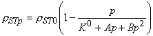 式中ρw为基准纯水密度,K0和K分别为大气压下和压力为p时的正割体积弹性模量,其中