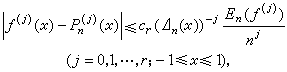 ,сr是仅与r有关的正数,E奱(ƒ)表示不超过n阶的三角多项式对ƒ的最佳逼近值。假设ƒ(x)是[-1,1]上有r阶连续导数的函数,则有n次代数多项式Pn(x)使得