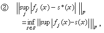 等4个关系式中任一式被满足,则称 s*为相应意义下的,在S中对 ƒ的最佳联合逼近元。这种S常取lp的某一有限维线性子空间,特别常取S为次数不超过n的代数多项式的全体,或给定阶数的有理函数集。在一定条件下,可以建立联合最佳逼近元的存在性、特征以及逼近度的估计,它与通常的切比雪夫理论有相仿之处。