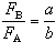 第一类杠杆可作成天平或秤(图2)。天平两臂长相等,用砝码的重量来量度物体重量。秤的重点到支点的距离b不变,用秤铊到支点的距离a量度物体的重量,在刻度秤星的位置时,要考虑秤秆和秤钩的重量对支点的力矩。令FB=0,秤杆和秤钩对支点力矩的代数和应与秤铊对支点的力矩aoFA平衡,由此确定秤星的零点位置ao(图2b)。