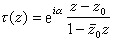 式中|z0|<1,α为一实数。1916年,G.皮克注意到施瓦兹引理可以有一个在上述麦比乌斯变换下不变的形式,它可放弃ƒ(0)=0的条件。