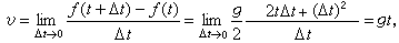 把这距离表示为ƒ(t),其中g是重力加速度,那么落体在时刻t的瞬时速度(简称速度),即距离对时间的变化率是