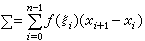 积分学设函数y=ƒ(x)的定义域是实数α及b(α<b)及其间所有实数构成的集,即闭区间[α,b]。设这函数的值域包含在一个闭区间内,即它是有界函数。用任意n-1个点x1,x2,…,xn-1(α=x0<x1<x2<…<xn-1<xn=b)把[α,b]分成n个闭区间[xi,xi+1](i=0,1,…,n-1),并且在这些闭区间中分别任意取一点ξi,作和式