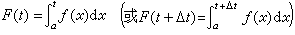 是y=ƒ(x),x=α,x=t(或x=t+Δt)及y=0所围成图形的面积。于是F(t+Δt)-F(t)是y=ƒ(x),x=t,x=t+Δt及y=0所围成图形的面积。当Δt充分小时,这图形的面积与图3中矩形的面积ƒ(t)Δt充分接近,由此可以想象到
