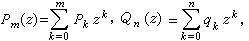 此处约定qk=0(k>n)。虽然所求得的Pm(z)和Qn(z)不惟一,但是比式