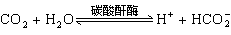 血液和血淋巴对二氧化碳,主要以碳酸氧根的形式运输。CO2 在血液和血淋巴中的物理性溶解,其量也是很少的。CO2进到血液或血淋巴以后就和水起作用,然后离解成H+和HCO婣。其反应式为: