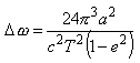 式中c为光速,T、a、e分别为轨道周期、半长径和偏心率。对于水星,此值与牛顿万有引力定律所得的差值为每世纪43.03。这与观测值十分接近,成为天文学对广义相对论的最有力的验证之一。