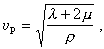 即是说,在介质中任一点的纵波速度恒大于同一点的横波速度。若介质是一泊松固体,即是说若λ =μ或v =1/4,则