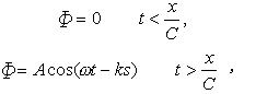 Φ=Acos(ωt-kx), (6)