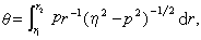 上式左端是p的已知函数,右端lgr是η的待定函数。这是一个阿贝型的积分方程,其解是已知的,可写为: