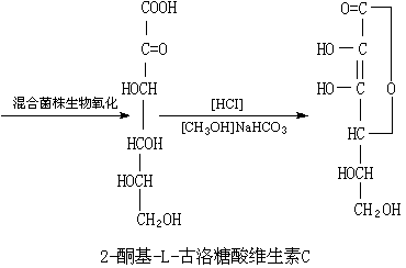 维生素C一种水溶性维生素,在新鲜蔬菜和水果中含量丰富。可利用弱氧化葡糖酸杆菌、生黑葡糖酸杆菌和醋酸杆菌属的某些菌株进行由D-山梨醇到L-山梨糖的氧化(通称一步发酵法)。被用作底物的D-山梨醇由D-葡萄糖媒促还原制备。L-山梨糖经化学氧化生成L-抗坏血酸,需先生产L-酮基-L-古洛糖酸,然后加酸处理,才可转化为维生素C。1933年,化学家T.赖希施泰因首先提出这一方法,并用于工业生产。因反应过程长,并需要大量强氧化剂,所以污染严重,连续操作困难。20世纪60年代以来,美国、日本、法国和联邦德国以某些种的葡糖酸杆菌、假单胞菌、欧文氏菌、短杆菌和棒杆菌,分别利用D-葡萄糖、D-山梨醇或L-山梨糖作底物,发酵产生2-酮基-L-古洛糖酸,但至今还未用于工业生产。