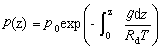 考虑到大气的状态方程P =ρRdT,可以得出气压随高度分布的关系,即气压-高度公式,或称压-高公式: