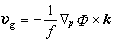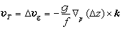 其中vh为等高面上水平速度矢量,k为铅直方向的单位矢量,f 为科里奥利参数。在地转平衡下的运动(见图),称为地转风(v)g),即: