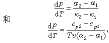 故对于一定的物质在相变温度T时,可由实验测得该物质的v、α1、α2、k1、k2、сp1、сp2等量,于是可由厄任费斯脱方程计算dp/dT,从而可以得到控制相变进行方向所必须的条件。