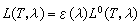 以A表示L(T,λ)。显然,具有热辐射A的决不限于某一物体。光谱发射率较高和温度较低以及光谱发射率较低和温度较高的许多物体都可能发出同样的热辐射 A,即出现下式