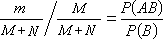独立事件同时发生的概率很容易从它们各自发生的概率算出,而为了计算不独立事件同时发生的概率就需要用到条件概率。设某城市有N个男人和M 个女人,其中患色盲者男性n人,女性m人。用Ω表示全体居民的集合,A表示全体女性居民的集合,B表示全体色盲患者的集合。某工厂要招聘一名化验员,要求不是色盲患者,问任意一位应聘的女性被厂方拒绝的概率是多大?这里所求的就是“女性中色盲患者”的概率,用记号P(B│A)表示。按等可能性原则,