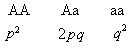 这三种基因型的频率跟上代完全一样,对基因来说,群体已经达到平衡。这频率就是该基因的平衡频率。