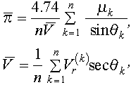 星群视差法移动星团的成员星都具有相同的空间速度。由于透视作用,它们的自行会聚于天球上的一点或者从某点向外发散,这个点称为“辐射点”。知道了移动星团的辐射点位置,并从观测得到n个成员星的自行μk 和视向速度V 噰(k=1,2,…,n),则该星团的平均周年视差为: